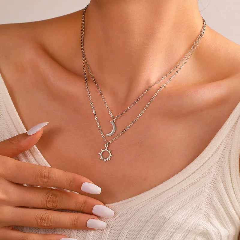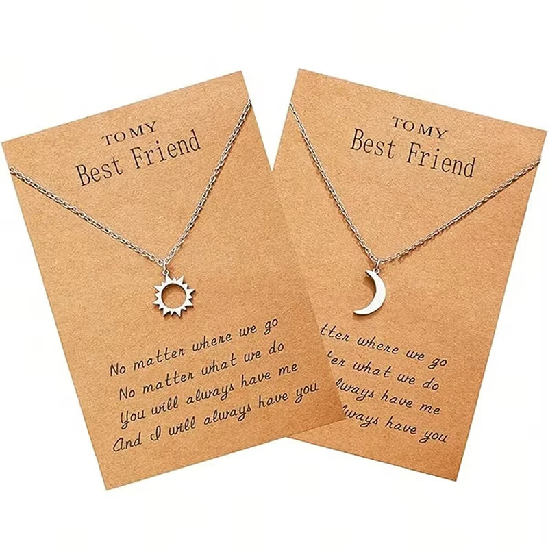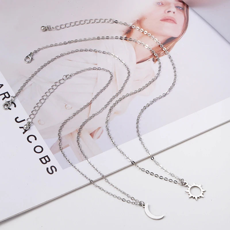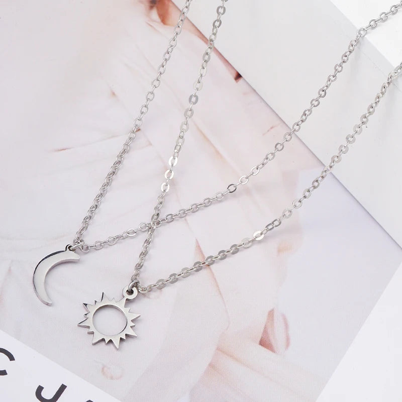 2 Pcs/Set Stainless Steel Silver Color Sun Moon Necklace For Best Friends Friendship Jewelry Gifts
